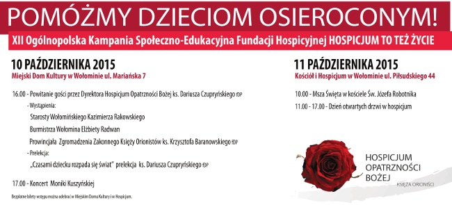 Zapraszamy na XII Ogólnopolską Kampanię Społeczno-Edukacyjną Fundacji Hospicyjnej - HOSPICJUM TO TEŻ ŻYCIE.