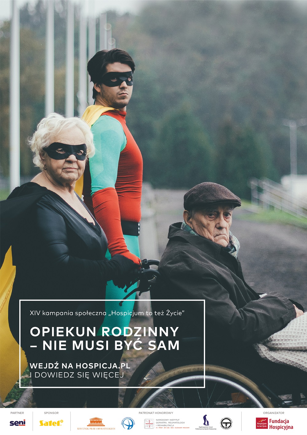 W ramach XIV kampanii społecznej ?Hospicjum to też Życie? kontynuowaliśmy poruszony w poprzedniej edycji temat sytuacji i potrzeb opiekunów rodzinnych, czyli członków rodzin sprawujących w domach opiekę nad swoimi niesamodzielnymi bliskimi dorosłymi i dziećmi. Jej hasło to: ?Opiekun rodzinny - nie musi być sam?. Poprzez kampanię chcemy przypominać, z jakimi obciążeniami wiąże się opieka nad osobą ciężko i nieuleczalnie chorą, jakie zmiany wprowadza w życiu opiekunów i jak bardzo potrzebne jest stworzenie systemowego wsparcia, funkcjonującego od początku choroby.