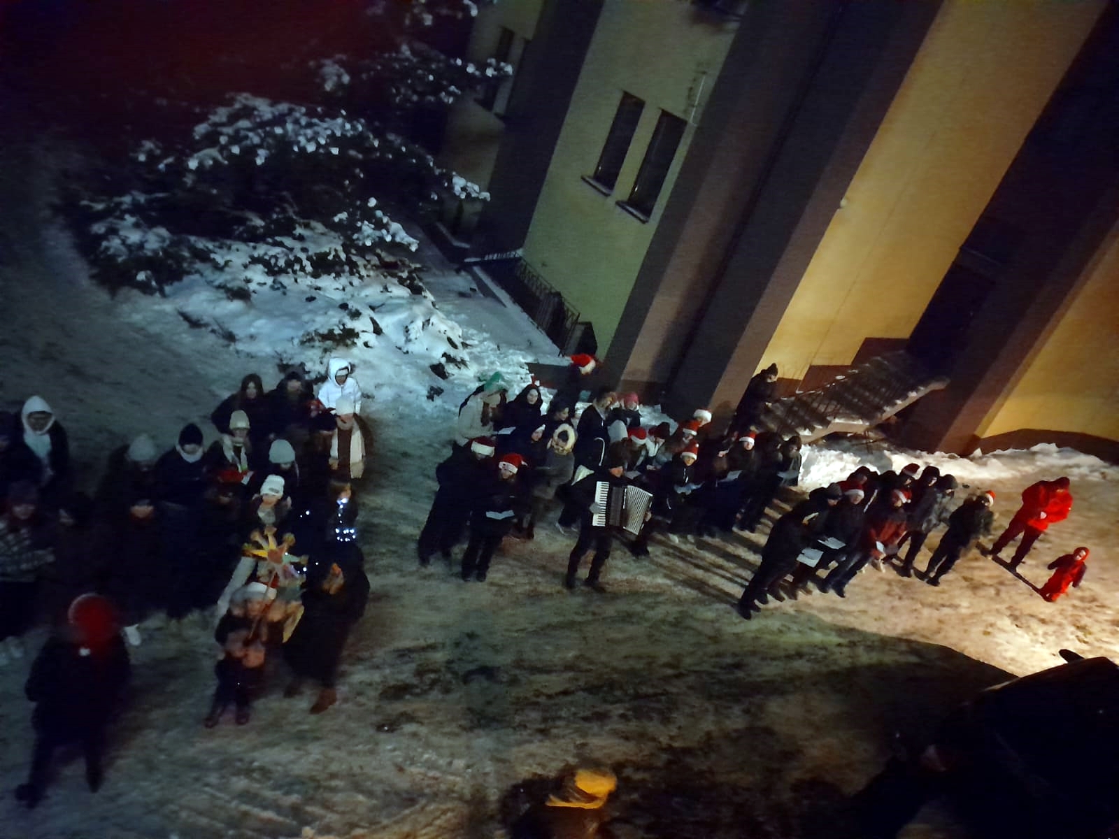 Grupa rozśpiewanych kolędników ze Szkoły Podstawowej nr 7 w Wołominie zrobiła niespodziankę naszym pacjentom dając koncert kolęd pod oknami Hospicjum. Dziękujemy za ten spontaniczny dar serca i zapraszamy za rok!