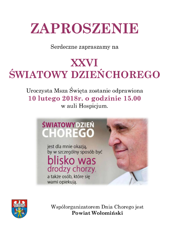 11 lutego 2018 r. - Zaproszenie na Dzień Chorego